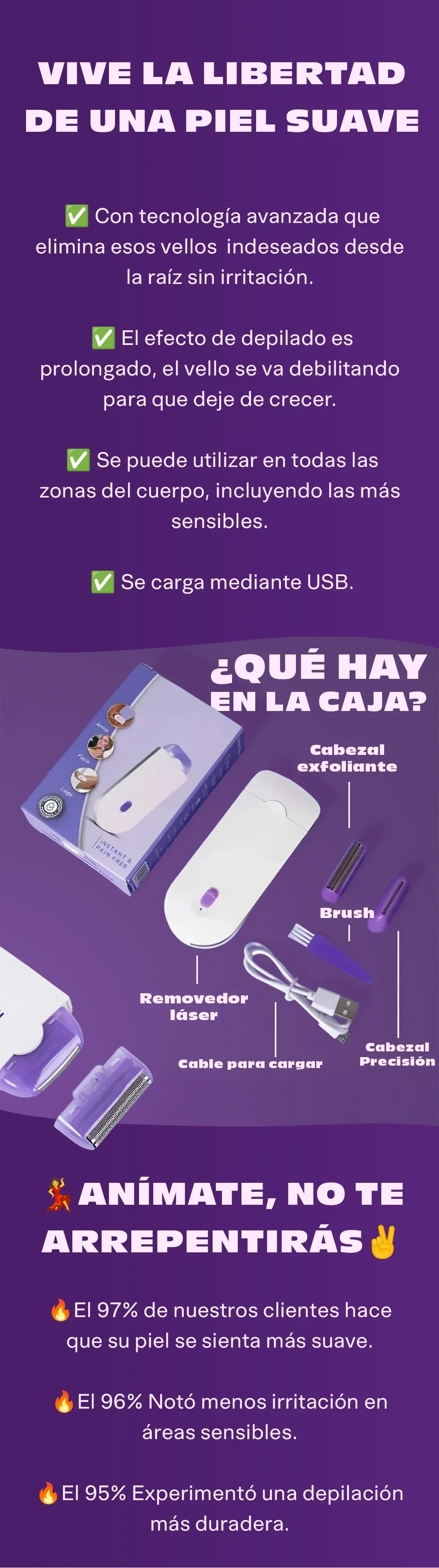 En solo minutos al día, podés depilarte cómodamente en casa y disfrutar de una piel suave, limpia y lista para cualquier momento.